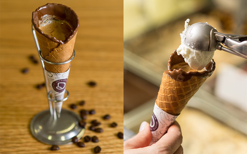 têm uma sorveteria que oferece café na casquinha de sorvete, com a opção